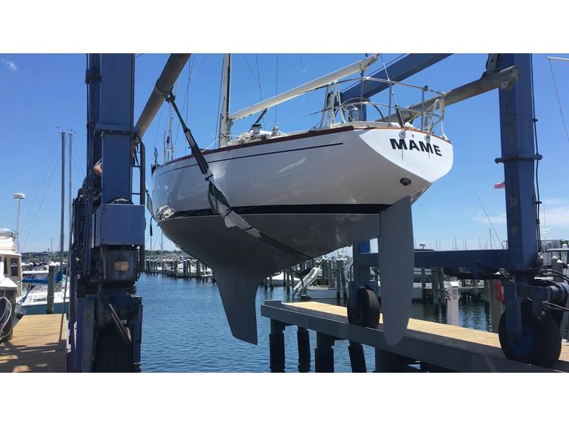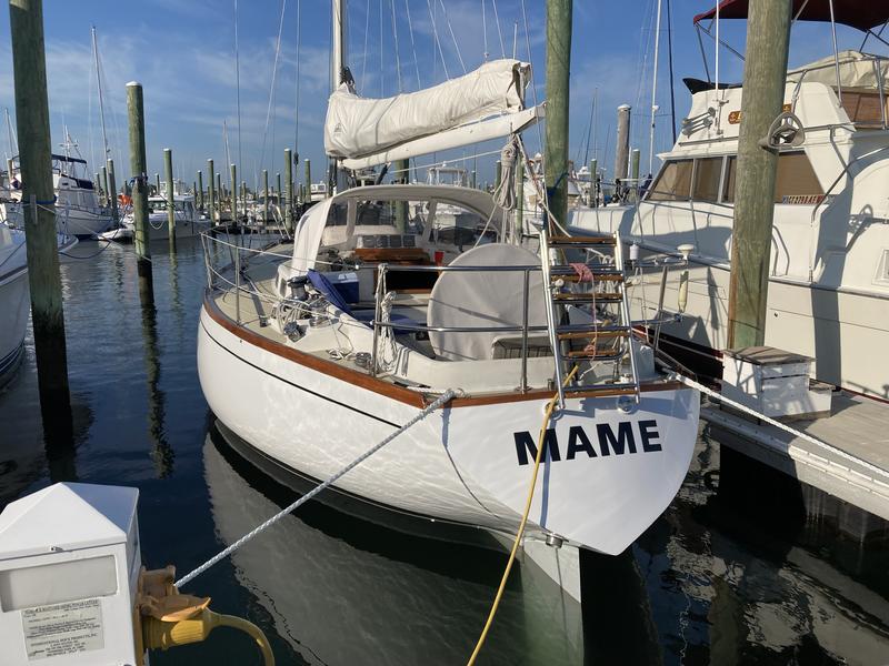 First owned by Steele Griswold - former owner of Shelburne Shipyard - Mame is a heavily modified Tartan-41. The hull and deck were ordered unfinished from Tartan Marine in 1974 and delivered to the Shelburne Shipyard where the interior and teak toe rail were installed to Mr. Griswolds specifications.
