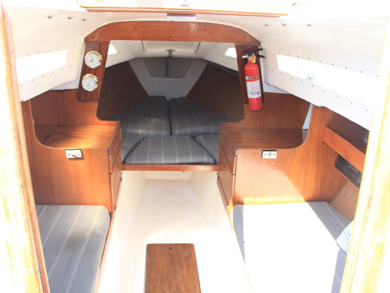 Mainsail: North Sails NPC Cross-Cut NorDac with two reef points (2022) Headsails: North Sails 111% Cruising Jib NPC Cross-Cut NorDac (2022); Pineapple Sails 150% Genoa PE10 (2020); Pinneapple Sails 75% dacron jib (from approximately 2004); North Sails symmetrical spinnaker (from approximately 2004) Winches: Lewmar size 6 one speed x 4 Tracks: Harken windward sheeting car and traveler track (2021); Jib sheet tracks (2021) Standing Rigging: Stainless steel (2020) Mast lowering system: yes, the tabernacle system is installable when needed Cooker: Gimbaled alcohol stove when underway; Portable induction single burner stovetop for use with shore power Oven/Grill: Magma Marine Kettle gas grill Lighting: Lumitec Aurora Flush Mount LED Dome lights (white dimming, red dimming) x 2 (2020) Clock: Weems & Plath Endurance (2022) Barometer: Weems & Plath Endurance (2022) Engine(s): Tohatsu 6hp outboard MFS6CD (2018) Fuel tank(s): West Marine 3-gallon EPA portable fuel tank with fuel line and pump (2023); 2-gallon gas can Battery(ies): Battle Born 100Ah 12V LiFePO4 Deep Cycle Battery (2020) Monitor: Victron BMV-712 Smart with BMV shunt 500 amp (2020) 110/220V Charger: Victron Blue Smart IP67 Charger Waterproof Charger (2020) Inverter: Wagan Tech Elite 400w Pro DC to AC Pure Sine Wave Inverter (2021) Shore power: 30 amp SmartPlug and ProMariner 30 amp ProSafe Fail Safe galvanized isolator (2021) Panels: AC and DC custom Blue Sea 360 panels (2021) Nav. Lights: Weems & Plath OGM Series Q Collection TriColor/Anchor LED Nav Light with Photodiode in Black Housing (2020); Weems & Plath OGM Series Q Collection Steaming/Masthead LED Nav Light in Black Housing (2020); Weems & Plath OGM Series Q Collection Bi-Color LED Nav & Docking Light in Black Housing (2020); Weems & Plath OGM Series LX2 Collection Stern (WHITE) Running Light Autopilot: PCNautic tiller autopilot (2024) Compass: Plastimo Contest 101 with black bezel, red card, and red light (2020) Log/speed: Airmar DST800 Smart Sensor Plastic Thru-hull NMEA 2000 (2020) VHF: Garmin / Vesper Cortex V1 - VHF Radio W/SOTDMA SmartAIS and Remote Vessel Monitoring - North America model (2024); B&G V20S VHF (2020); GAM Electronics SS-2 Split (159 MHz) antenna (2025) GPS: Garmin GA 38 GPS and GLONASS Antenna (2024); B&G V20S VHF contains a built-in GPS antenna for backup (2020) Pulpits: Bow (original) and stern(2020) Lifelines: Vetus SS Stanchions, 1-wire, 450 mm (2020); SS lifelines (2020) Anchor(s): Pivoting fluke anchor 13 lb; 15' chain and 200' rode |