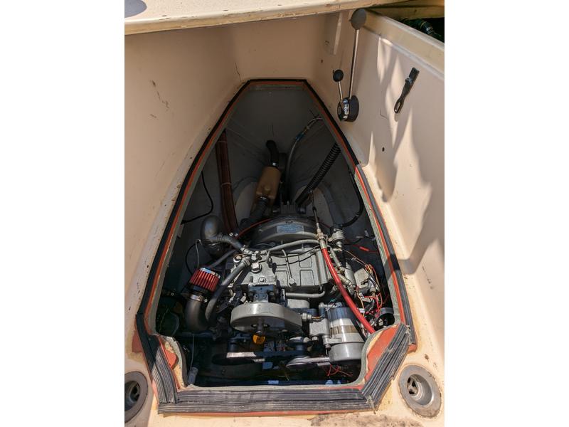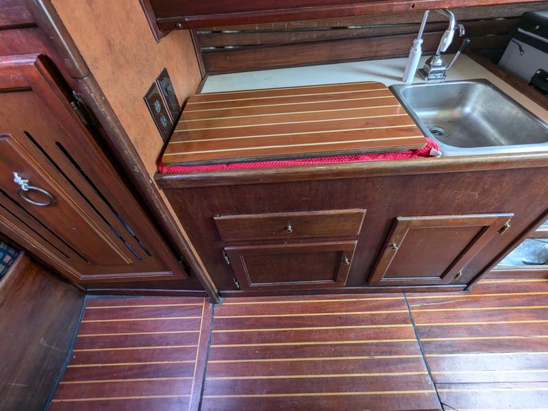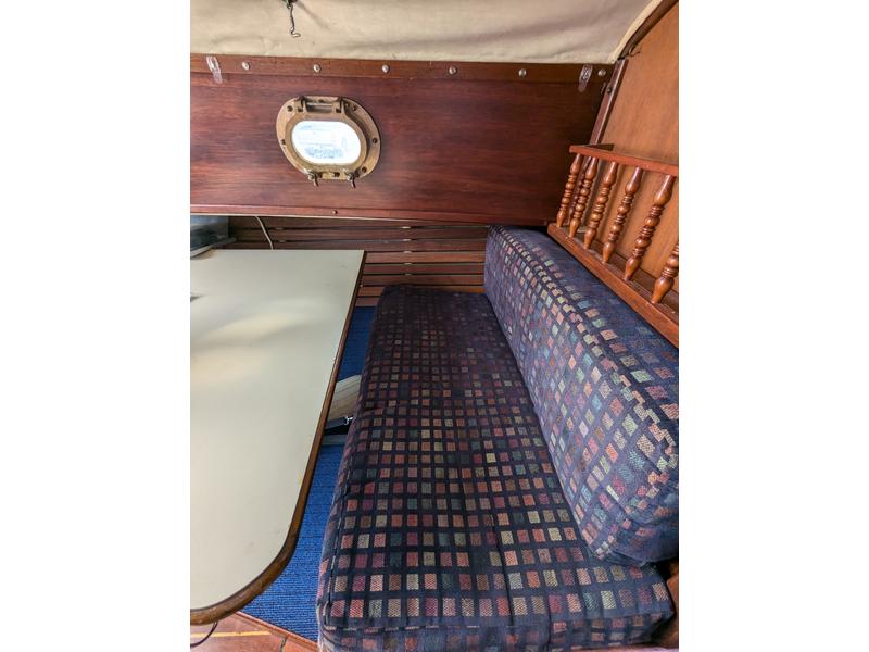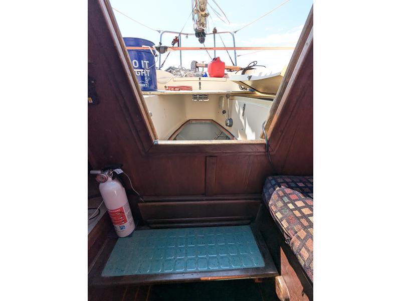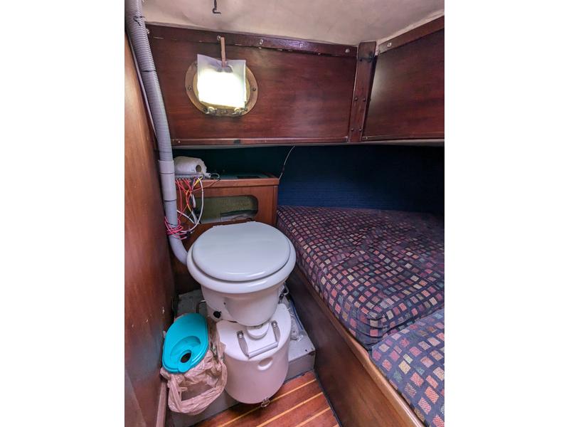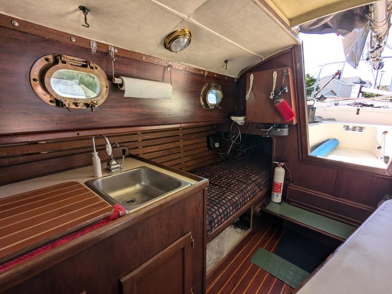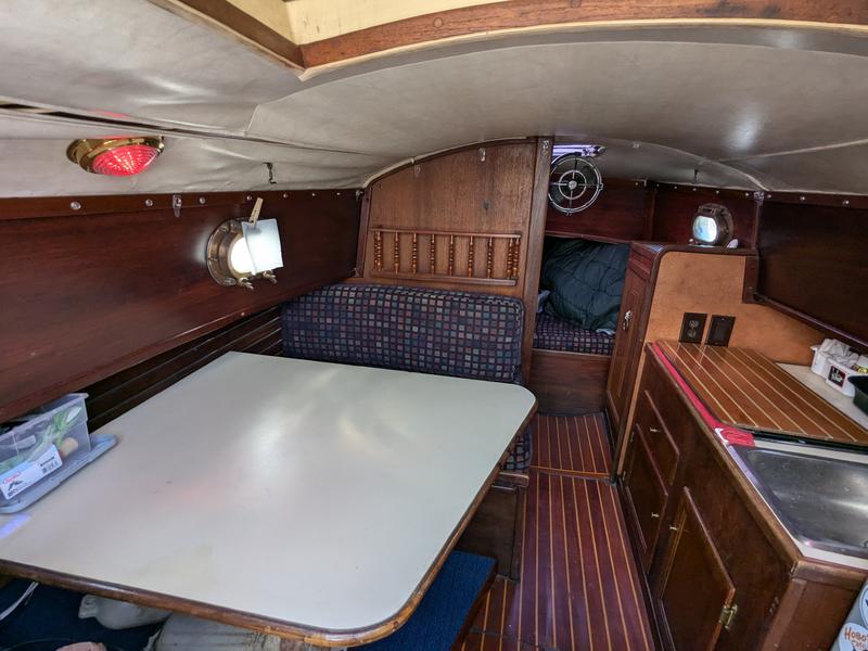 No soft spots. All portlights and hatches seal completely (no leaks). Some hairline gelcoat cracks typical of age but no excessive crazing. Fuel tank removed for inspection and in serviceable condition but never used. I use a small aux tank located in lazarette (estimate .15-.2 gallons per hour based on logs). Water tank removed for inspection and repair, replaced with 29 gal flexible (removable) water bladder with vented/pressurized electric faucet in galley.