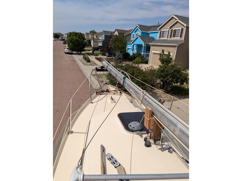 All lines run to cockpit, including main halyard and 2 reefing lines (MastGates.com custom sail channel insert, Spinlock triple clutch, Barton single line reefing systems) Note: System is installed and functional, but some pieces of the Barton SLRS will need to be more permanently attached as I was leaving flexibility to fine tune the running rigging. Original jiffy reefing system functional as well, if you prefer reefing at the mast.