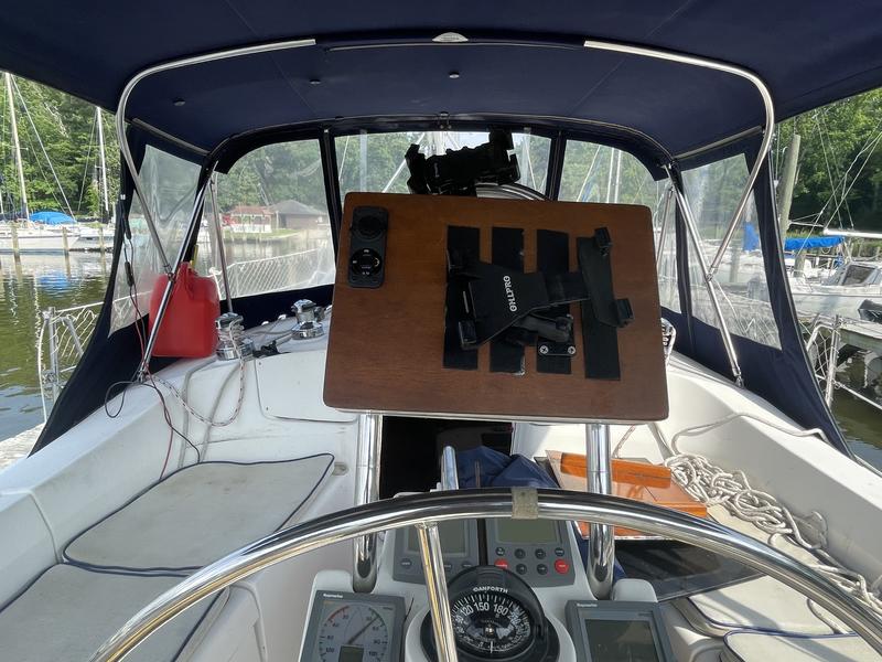In addition it has a $9500 full cockpit canvas enclosure with newer isinglass in beautiful condition davits and a 4 hp Tohatsu outboard for the dinghy but you would bring your own dinghy.plus solar ,Victron MPPT and 5 batteries.