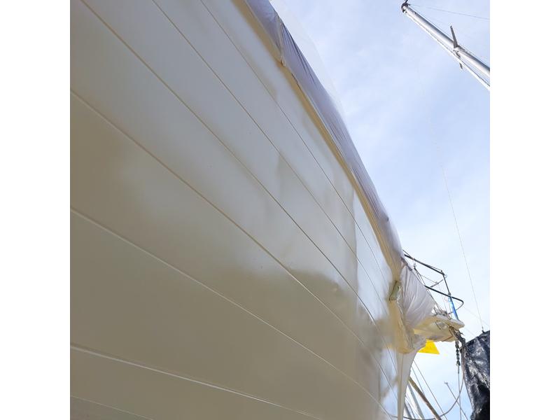Brand new cutlass bearing, stuffing box. prop polished! Brand new interior cushions too! All brand new bottom with 3 barrier coats and 2 bottom paint coats, same as new polyurethane 2 parts marine paint for top and side hull (3 coats plus primer)...pictures before and after the paint job