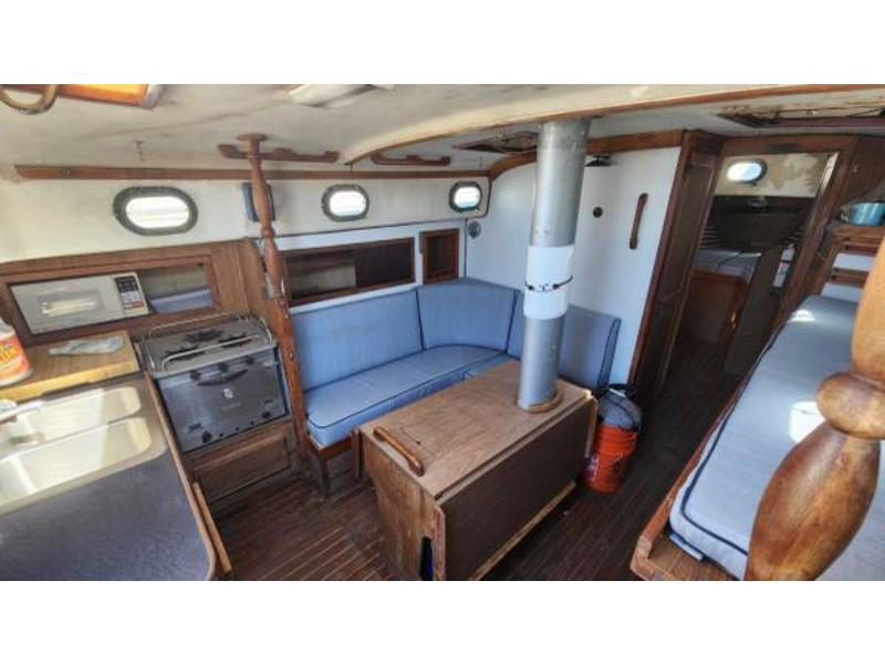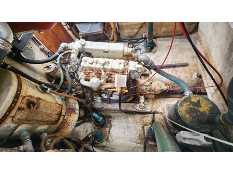 Engine runs well with low hours after rebuild. This boat is being sold as is-where is. Once you finish your refit you will have a comfortable world cruiser!