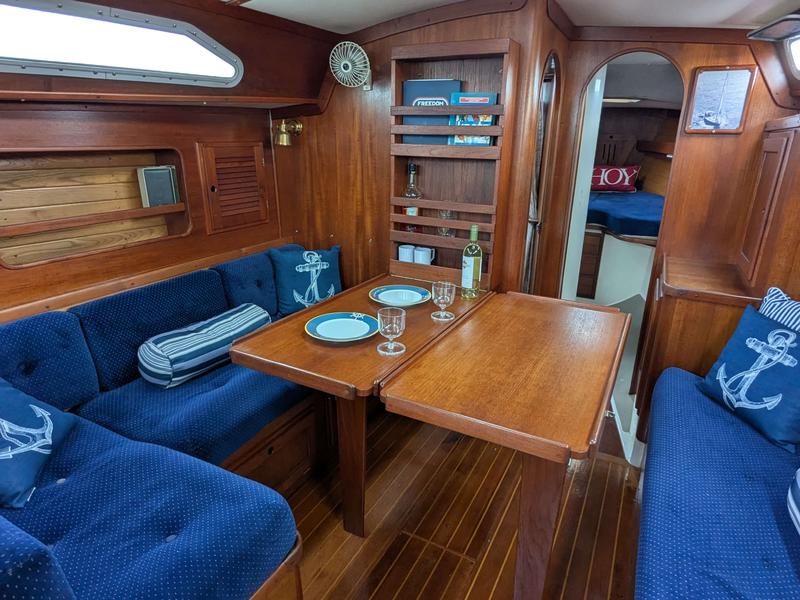 DOLCETTO is a well-equipped Freedom F 38 with a spacious cabin and an unstayed carbon fiber mast with self-tacking camber spar jib. Designed by Gary Mull and built by Tillotson-Pearson for Freedom Yachts to be fast, easily sailed and capable of world travel. She was repowered with a larger 40hp Yanmar diesel (2005) and new sails in 2019. Beautiful stick built teak interior with all the amenities for comfortable cruising. Currently bottom painted and in the water ready to take you on your next sailing adventure! See below for additional information.