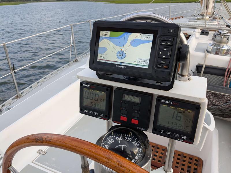 Garmin/Nexus Echo Map Chart plotter UHD 64cv, wind, depth, log/speed, heading, and three repeaters. Raymarine Autopilot. Raytheon Radar. Uniden VHF with wireless remote, radio with CD, Bluetooth and 4 speakers. Xantrex Link 2000 battery interface and Xantrex Inverter/Charger.