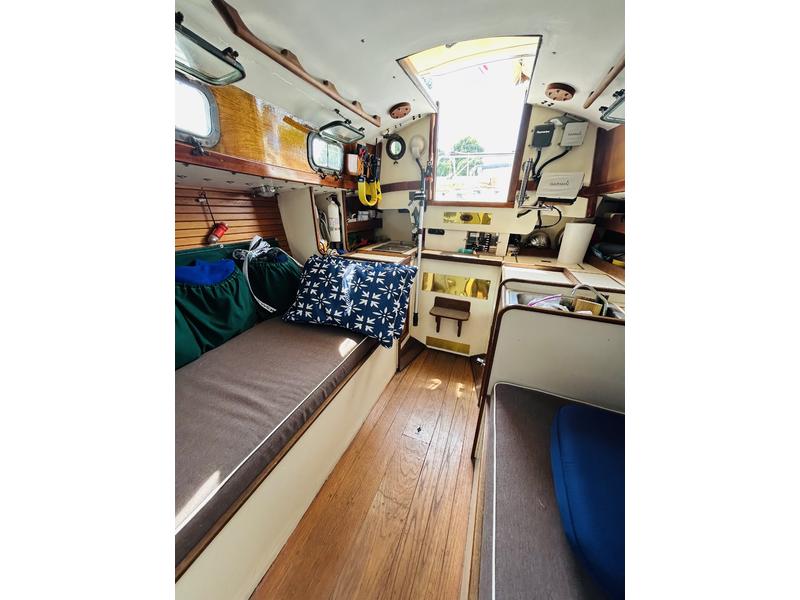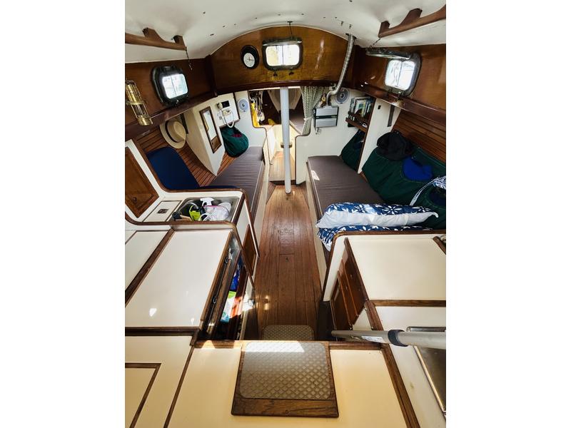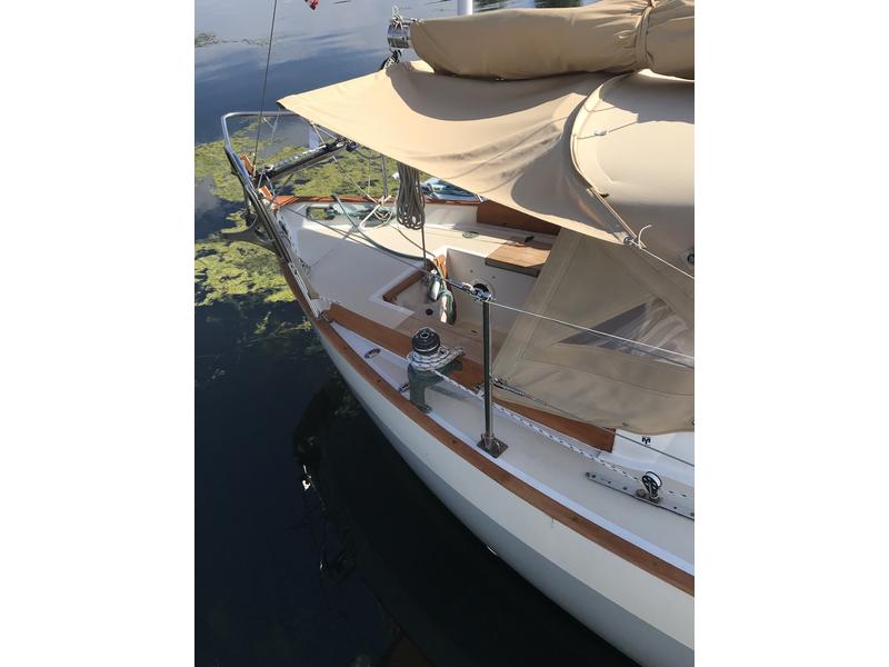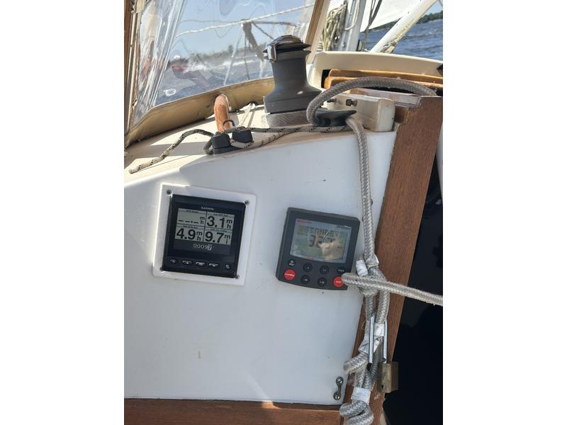 Nanni 2cyl diesel (no hr meter, but approx 350 hrs is conservative est.(2001) Wallas 1300 BTU forced hot air heating system. (2001) Spinnaker poleForespar Boom vangForespar Lazy JacksHarken New rudder cheeks(mahogany) 2020 New Quantum main and jib (2023) New interior cushions (2023) New Vetus SS throttle/shifter (2023) Spare Tiller Cockpit Awning (zips to dodger) Bruce anchor w/rode and chain Airmar DST-810 triducer Garmin GMI-20 multi gauge with GND-10 gWind masthead anenom. (2024) NMEA 2000 backbone , which shares depth, speed, water temp, wind direction./speed across the network to the Garmin GPSmap 741 (2024) Fusion MS-RA210 Bluetooth stereo and speakers (2023) Kuuma rail mount Propane BBQ grill New custom mahogany forward hatch w/bronze deadlight (2022) Autohelm ST4000 tiller pilot Detachable inner forestay/quick release Ash shroud rollers Bronze Lewmar 16 ST primaries Alloy Lewmar ST cabin top winches Custom mahogany fwd hatch w/bronze deadlight 5 bronze opening ports/screens 2 bronze Dorade vents |
