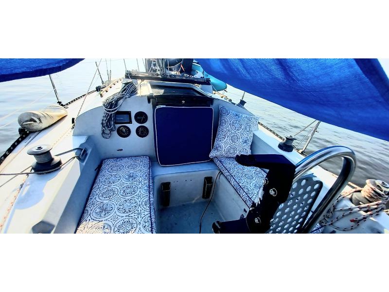 Includes: Spinnaker Pole Whisker Pole Strut VHF Sails in good condition (main is dutchman, jib is furling, light air spinnaker) Winter cover (needs sewing) Dinghy (needs repair)