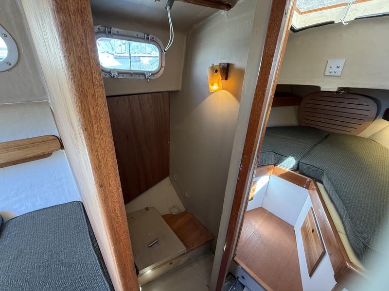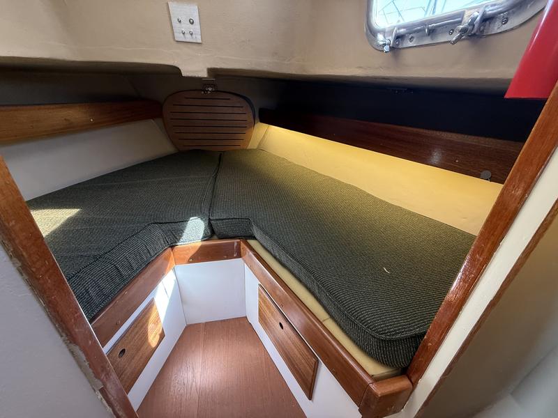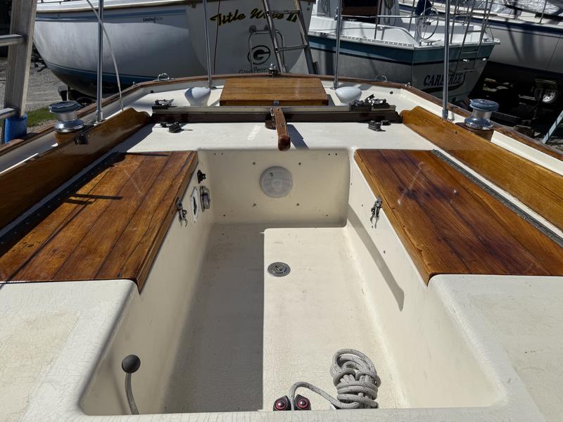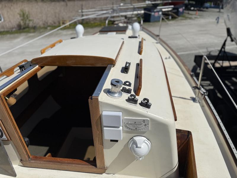 New Dorsail Mainsail (2020) and 135% Genoa (2021) 3 full keel, with another 3 centerboard Two-speed winches, line clutches/cam cleats, and traveler for optimal sail handling Autohelm T2000 and ST30 wind, depth & speed instruments fully operational Additional sails: Two 150% genoas and two spinnakers; rigged for spinnaker use and club raced weekly Powerful backstay adjuster for performance tuning All lines in good condition New porta potty, new VHF radio, antenna, and cabling Chain plates system refreshed, new standing rigging, and Furlex furler Teak regularly maintained/replaced; mast & deck painted. All stanchion bases and hardware rebeded. Centerboard serviced with new cable and Interlux 2000e primer. Interior improvements: new sink, faucet, water pump, drawers replacing ice box, cushions, refreshed woodwork and lighting DC wiring largely replaced; onboard charger with two deep cycle 12V batteries, one new 2025. 30 amp shore power cord and 15 amp adapter. New lifelines with port and starboard gates; dive ladder added for swim access. Soft deck spots repaired, two bilge pumps (powered and manual). Engine: Reliable Atomic 4 gasoline engine in excellent running order New electronic ignition, carburetor, water pump Exhaust system redone New cutlass bearing, stuffing box repacked Trailer: Yard trailer in very good condition Makes a 30-mile round trip annually at 20 mph |