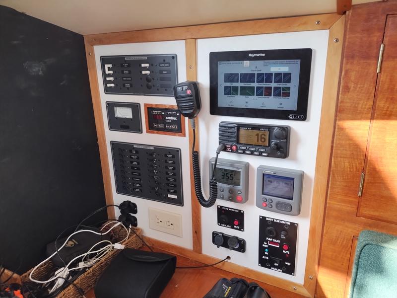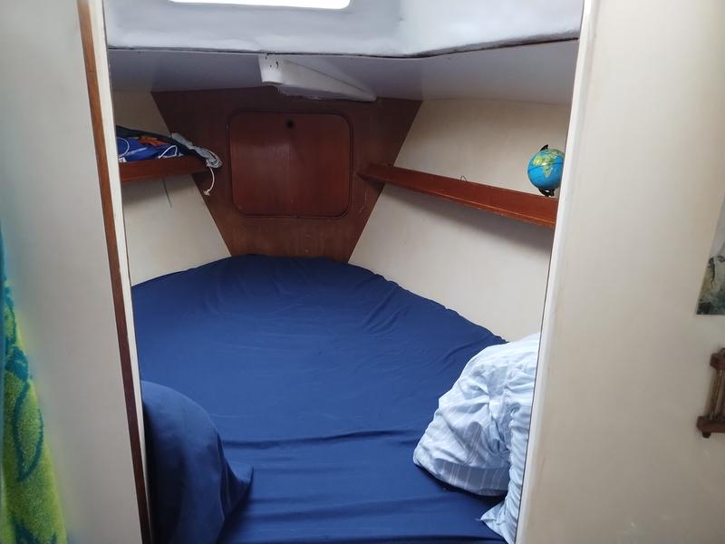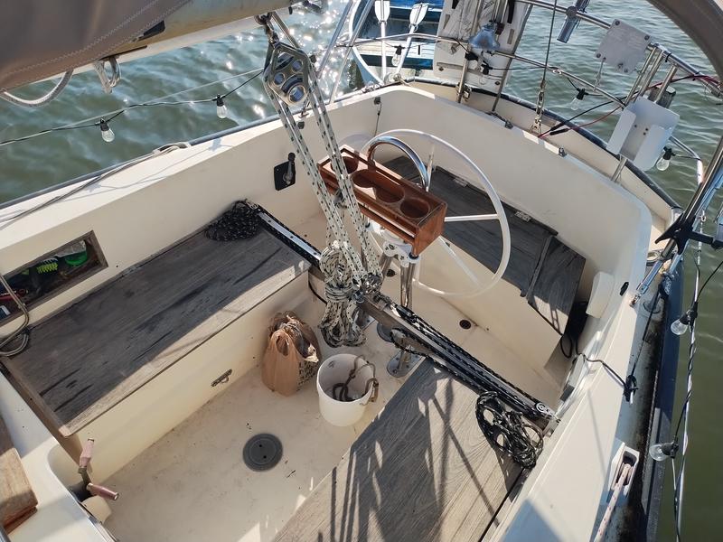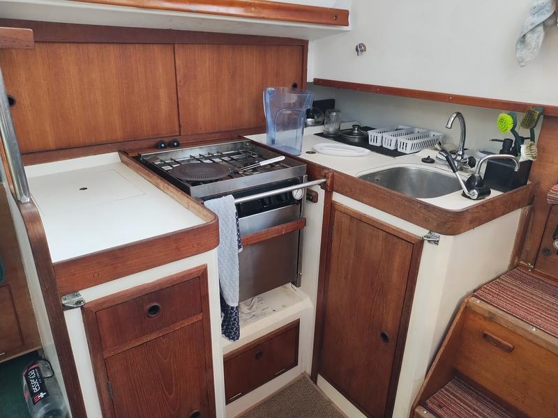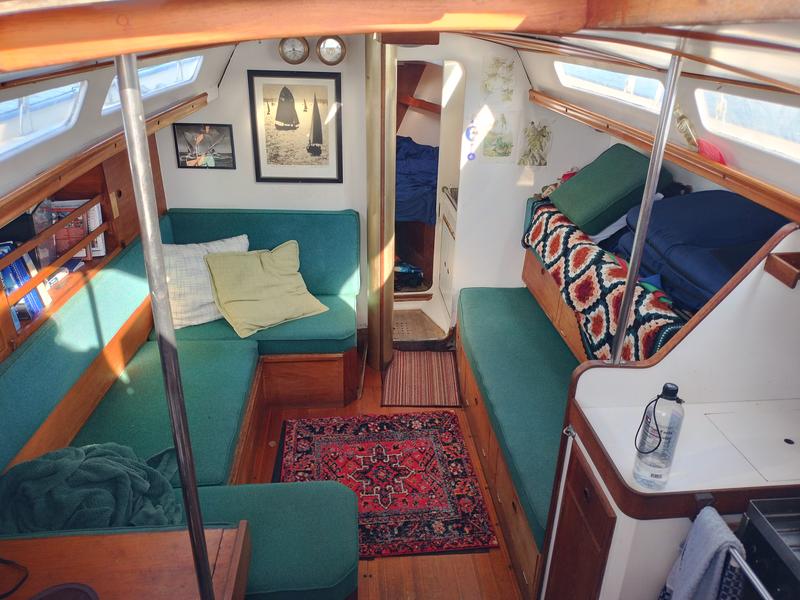 Delta anchor, 50 feet of chain, 200 feet rope Spare CQR anchor and rode Perkins 4108 diesel Hydraulic drive works perfectly 200 watts solar, no need to run engine just to charge batteries Water heater Force 10 galley stove Mini fridge Chartplotter at nav station Autohelm Assymetrical Spinnaker 150% Genoa on roller furler, multiple options for smaller jibs.