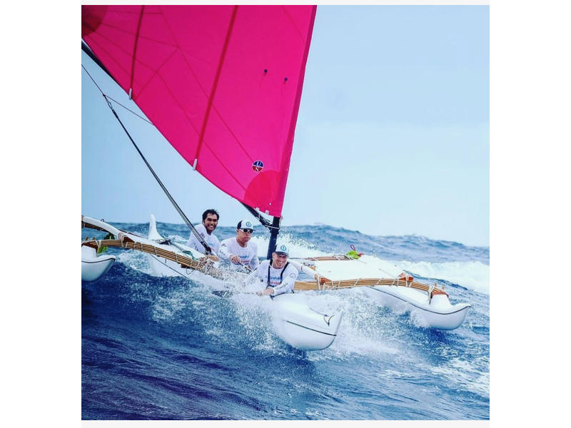 Holopuni is a Hawaiian trimaran capable of high speeds sailing with a crew that can paddle to assist speed. The boat is narrow