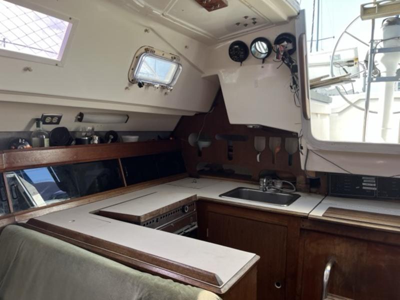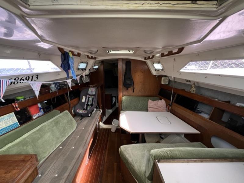 Below deck, it has the largest cabin I've ever seen on a 30-foot boat. Large settee, V-berth and huge aft cabin for storage.