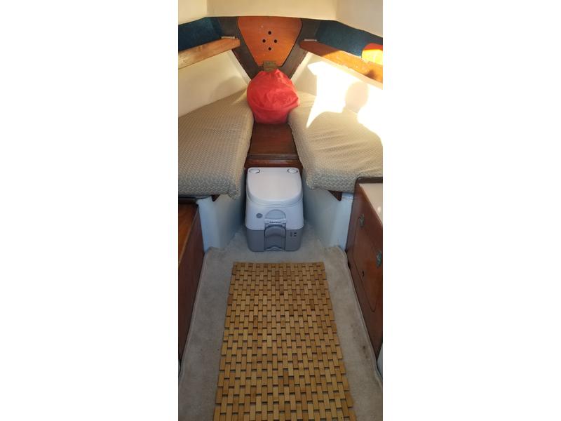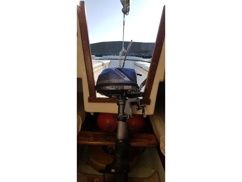 Includes newer Doyle mainsail, roller furling jib, spinnaker and pole; 5 hp Nissan outboard with low hours, shop maintained; set of four life preservers, bulkhead mounted compass, dock lines, anchor, fenders, cockpit cushions and mucho other gear. Cabin and deck just painted. Boat was just hauled, topsides repainted and new high quality Petit Trinidad anti-fouling paint done. |