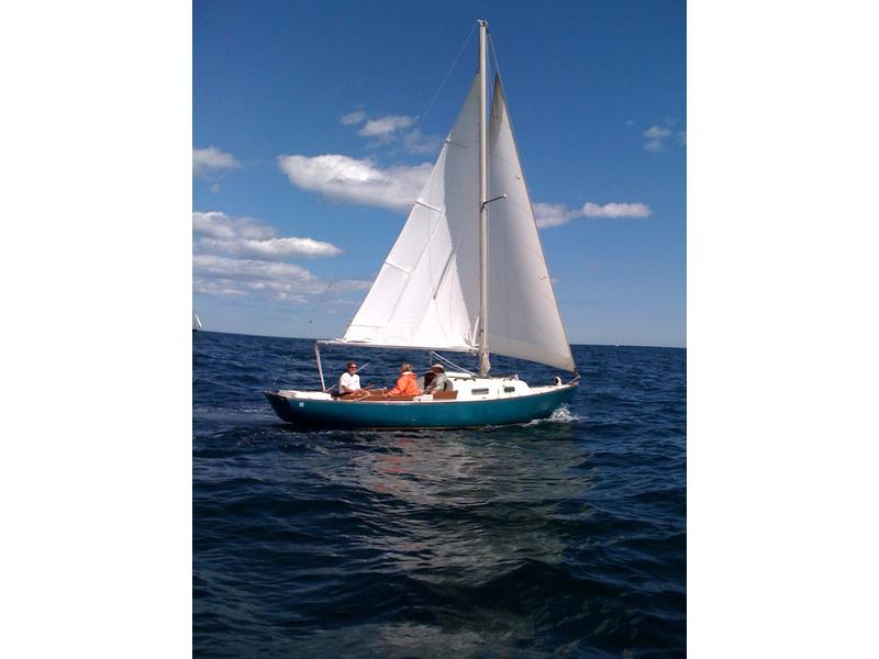 Classic Rhodes Designed 26 ODay Outlaw Sloop for Sale. Solid, seaworthy, easy to handle singlehanded, have sailed offshore many times to the Cape and Isles of Shoals; Sleeps 4. Includes newer Doyle mainsail, roller furling jib, spinnaker and pole; 5 hp Nissan outboard with low hours, shop maintained; set of four life preservers, bulkhead mounted compass, dock lines, anchor, fenders, cockpit cushions and mucho other gear. Cabin and deck just painted. Boat was just hauled, topsides repainted and new high quality Petit Trinidad anti-fouling paint done. For more specs and design info see https://sailboatdata.com/sailboat/outlaw-26-oday/ Asking $3,500. |