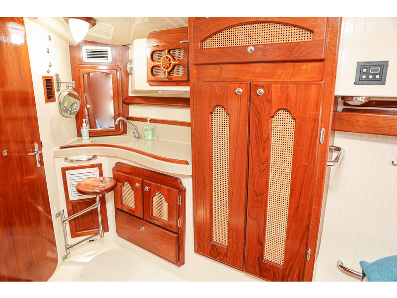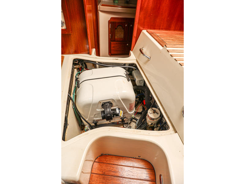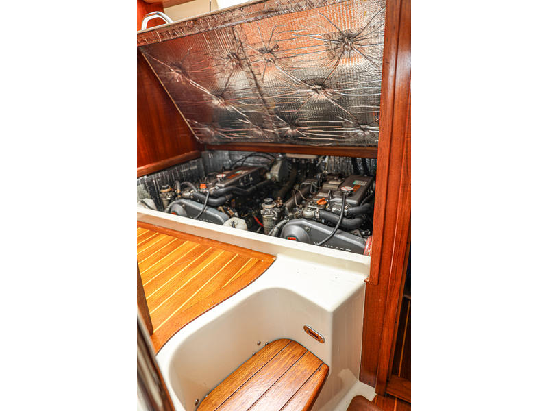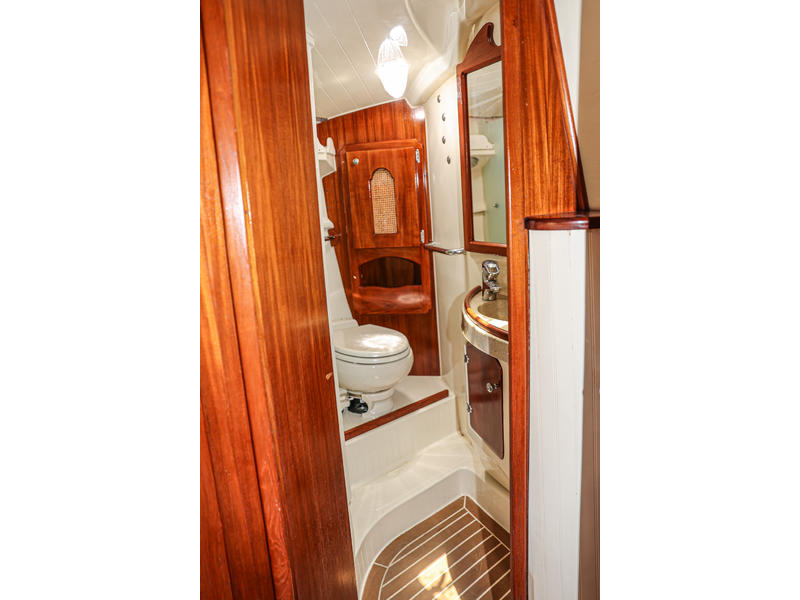 Twin Yanmar Single Turbo Diesel 4JH4-TE 75 HP, heat exchanger cooled Self-Tacking Jib with Harken Roller Furler AM/FM/CD/DVD Player Stern Rail with Stern Rail Seats Vertically Retracting High Aspect Keel/Solid Lead Torpedo, Electrically Operated Swim Ladder with Hot and Cold Shower at Transom Custom Interior Cushions Self Tailing Winches, Two #50 Two-Speed Sheet Winches, Two #40 Halyard Two-Speed Winches Burma Teak Throughout 50 amp Shorepower Recepticle and 50' Cord Vertically Retracting High Aspect Rudders (2) Compass Deluxe SS Opening Hatches (5) Deluxe Interior Commander Chair Layup in Handlaid, Unidirectional fiberglass, critical laminates of hull, keel, rudder and trunk are carbon fiber Deluxe First Mate Chair or Extended Counter Storage 6-person table converts to Coffee table to Double Berth Two VacuFlush Heads with Macerator Critical Fiberglass Parts are Infused FRP Anodized Slotted Toe Rail 180 Gallon Fresh Water Supply/Dedicated Gauge Deluxe Interior Commander Chair 180 Gallon Diesel Fuel/Dedicated Gauge Dual Stainless Midship Chocks Single Helm Steering/48" Wheel Dual Anchor Storage 600 A/H AGM Batteries/3 Year Full Replacement 12 Year Life Electric Refrigerator/Freezer 12 Volts Wheel Steering with 48" Stainless Wheel Molded Gelcoat Sheer Stripe. 2-Part Polyurethane Boot Stripe. Fully Molded Structural Headliner Electric Deep Freeze 12 Volt Fully Battened, Full- Roached Mainsail with Reef Points Iso-NPG Gelcoat on All Surfaces Teak and Holly Sole in Cabin 3 Burner Propane Stove/Oven Strong Track System with SS Main Sail Slugs Mast Light, Steaming, Deck Light Six Stainless Yacht Cleats Bow Pulpit with Double Lifelines Windlass Custom SS Arch with Traveler Bowsprit with Rollers for Two Anchors 5/8" Towing Boat Eye |