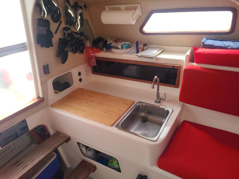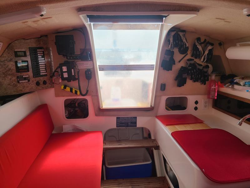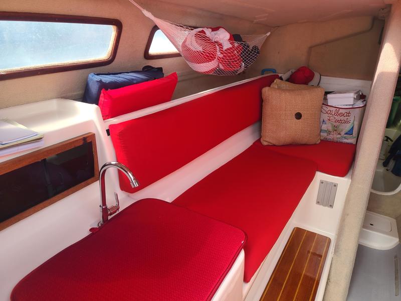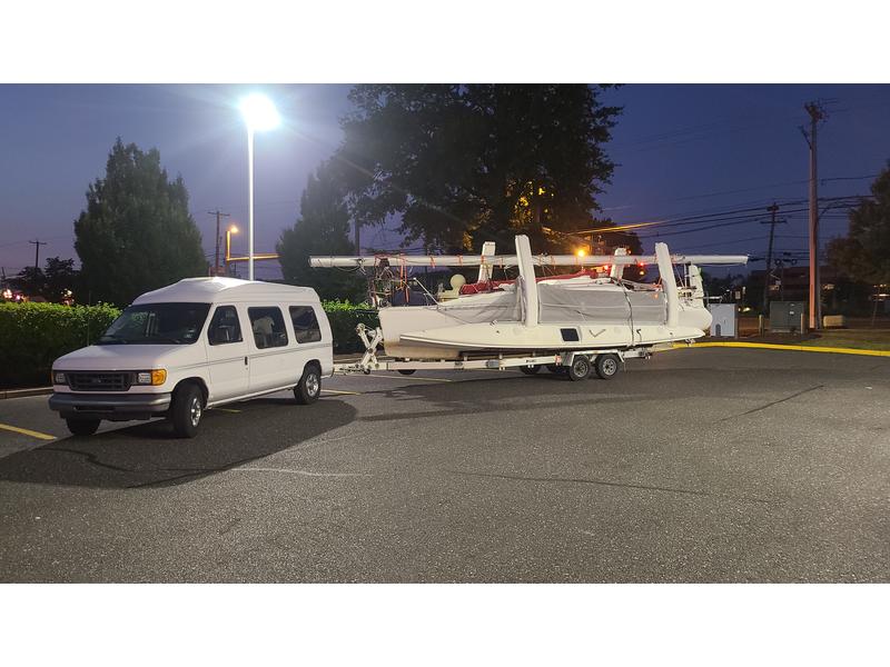 Main sail, Jib and Screecher are relatively new all in excellent condition. Roller furling is in great shape. New trampolines. Many new lines, Im always replacing any lines that are worn. Newer LiFePO4 100Ah batteries. Pure Sine wave inverter, two 100-watt Solar panels. New LED lighting. The electrical system is new (except for a few original wires), All new plumbing, shower in head area and swim platform. Marine head flushes with fresh water. New Fridge/freezer. Auto pilot, VHF with NMEA 200 interface to GPS. The Main in raised by a power winch helper (Milwaukee 28v, works great) Interior cushions redone, like new. Yamaha 9.9 outboard in perfect condition, always maintained. Fortress anchors, Sea Hawk white ColorKote ablative bottom paint (you are good for several years). Good trailer with brakes and new LED lights, boat stands, and many special pieces of equipment included. |