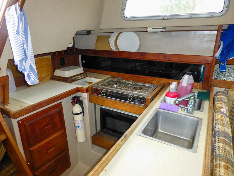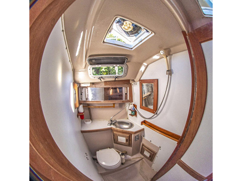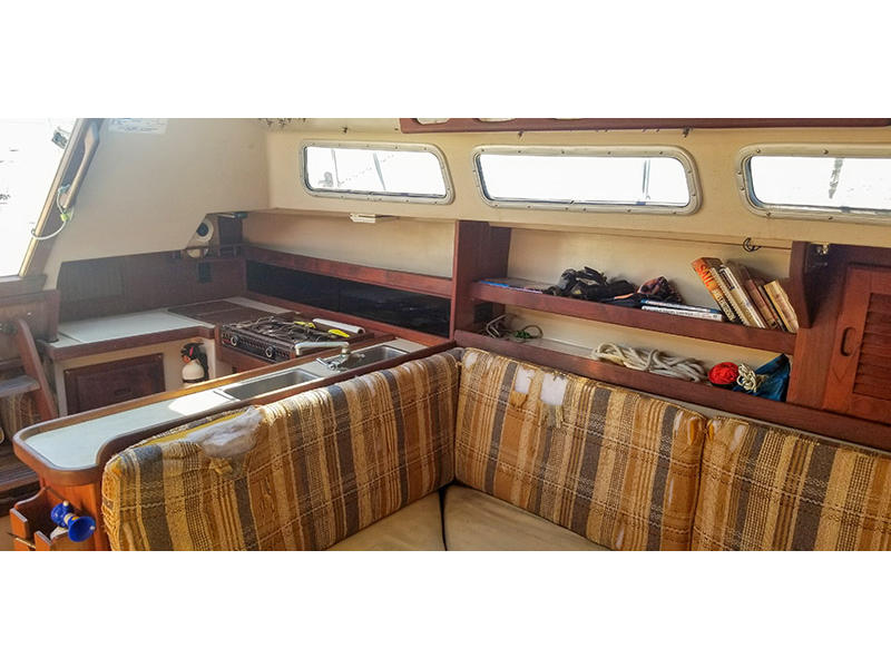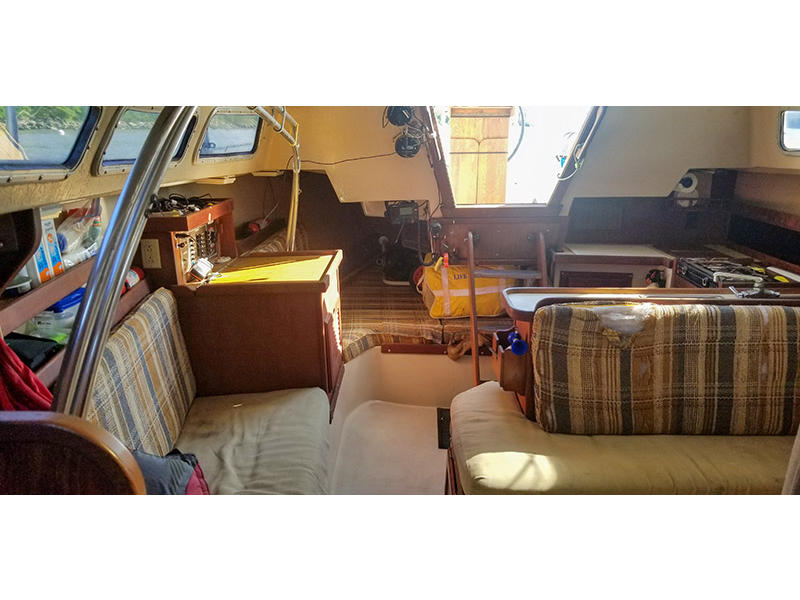 Sleeps 5 : V-berth, convertible dinette, and aft quarter berth.