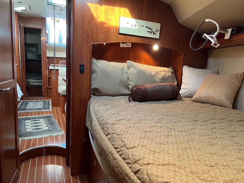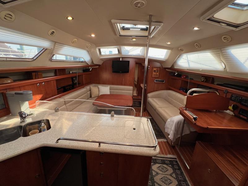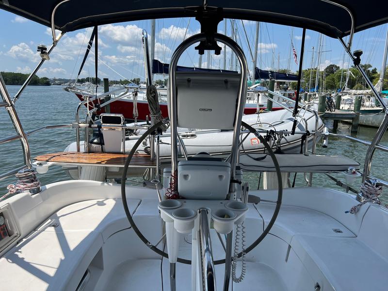Boat show model with Mariner package. Original owner. Commissioned 2013. Professionally maintained and upgraded. Chesapeake Bay boat, hauled every winter. 5 ft. shoal draft. Roller furling main and jib. Equipped for single handing. Complete suite of cockpit electronics, TV, Bose stereo and Sirius. Custom dodger, bimini, cockpit canvas enclosure. Lots of storage. Fully equipped galley with separate freezer and fridge. Bow thruster and electric windlass. Generator. Reverse cycle aircon and heat with separate controls in aft and forward compartments. Open and airy with 6 ft 10 inches headroom in salon and large, elevated windows. Numerous Bomar opening hatches with screens and shades. Queen-size berth aft and large Pullman berth forward, both with custom bedding. Salon table lowers for additional berth. Two fresh water electric heads with showers, separate standup shower aft. Dinghy and outboard on davits. Turnkey sale with all equipment, supplies, and spares. Completely outfitted and ready for extended cruising. Excellent condition.