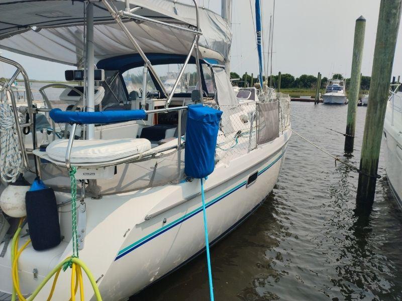 This 1998 Catalina 380 (HIN: CTYJ0110L798), a Gerry Douglas design, is a proven cruiser named Cruising Worlds 1997 Mid-Size Cruiser of the Year. Meticulously maintained by its owner in Southport, NC, this vessel is in very good condition, boasting a reliable propulsion system, brand-new rigging (June 2021), and well-maintained sails. With recent upgrades like a new generator, solar panels, and bow thruster, its ready for your next adventure along the Southeast Intracoastal or beyond.