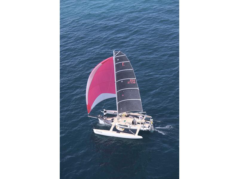 This is a well maintained, race winning boat that just won the Chicago Race to Mackinac Multihull overall! It has also won the Sarasota Bay Multihull Regatta (PHRF High) in 2023 and 2024 and numerous smaller races. The boat has be continually upgraded with a double spreader rig, class legal bowsprit with proper reenforcing and lower bobstay attachment , new electronics (2022), Dyneema halyards and sheets, wired for StarLink, C-head, 8:1 shroud tensioners, Windward Sheeting Traveler Car, etc. It has been a pleasure to own this boat. The only reason Im selling it is because I have acquired a F-25C which Ill be racing and Trinity deserves to be sailed. The boat is literally turn key, well there isn't a key but you get the idea. The boat was weighed for the Mac race and came in at very light 2930 lbs.
