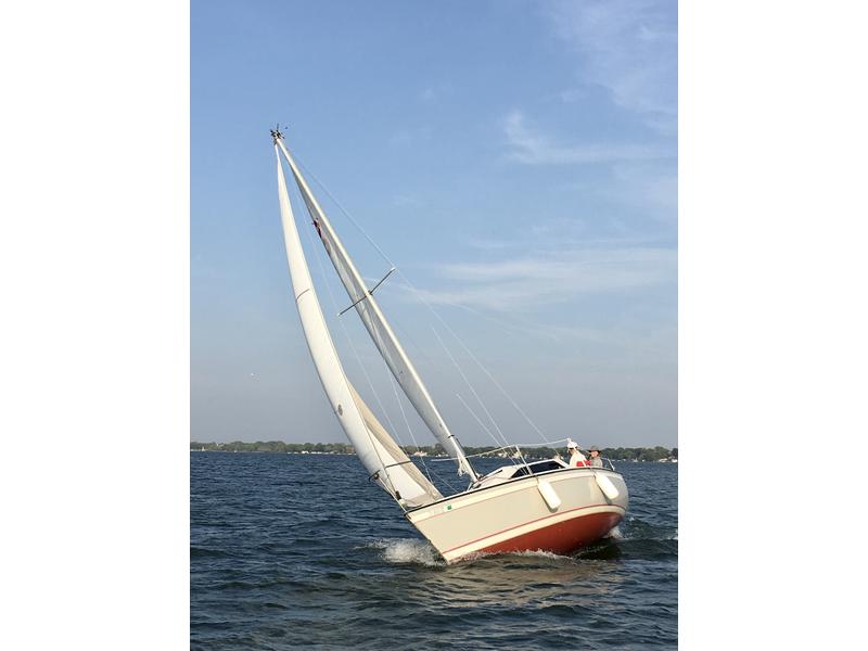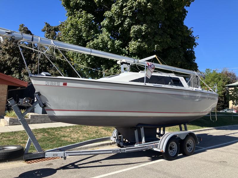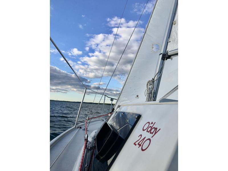**PRICE INCLUDES CUSTOM LOAD RITE TRAILER** Intelligent Modern design and generous HQ construction. Considered one of the best and last ODay Yachts ever built at the Fall River, MA headquarters. The beautifully crafted 240LE sailboat has all the features of a large Coastal Cruiser yacht, with the luxury of being trailerable. It has been loved, enjoyed, and well-maintained. *Midwest Inland lake sailed for her entire life- and has never seen saltwater* Turn key ready for the next enthusiast, this package represents value and solid craftsmanship that is hard to find in todays models. 9.9 HP 4-STROKE Honda Engine for reliability is quiet and efficient. Brand New North Sails Racing Mainsail. Roller Furling jib, with jiffy roller reef & furling system. 1200lb solid lead patented Winged Hydrokeel for speed, agility, performance, and shallow draft. The superbly designed interior is spacious and accommodating with ample headroom featuring beautiful custom interior teak wood craftsmanship, a separate and brand-new private head, a galley with 2-burner stove, deep sink, a custom ice chest with handy meal prep counter tops. Rated Hull speed at 11.33 km/h **READY TO SAIL!** |