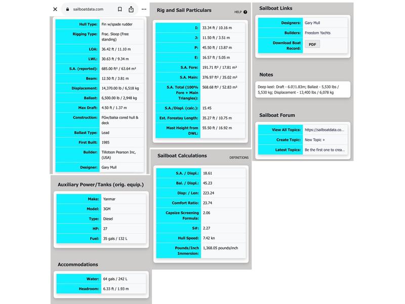 The Freedom 36 as featured in The Worlds Best Sailboats has an interior volume comparable with most 40 footers. The sailing experience is one of ease and simplicity without sacrificing any performance. The changes and upgrades to Qukiluq in 1991 and 2001 and continued to the present day give her an unusually warm and comfortable feel. The two staterooms, large galley, spacious salon and diesel heater make it a comfortable liveaboard. This well maintained Freedom 36 has a lot to offer the Northwest, BC and Alaska cruising family. Asking price: US$49,500. We are currently in transit from Alaska to Seattle. Special discount for a sale concluded before we pull it out of the water October 1, 2025! Contact us for a list of equipment that goes with the boat. Michael Samoya and Sharman Haley (206) 948-9270 / (907) 360-3646 enso03@sbcglobal.net |