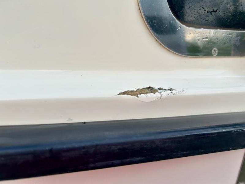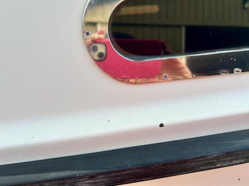 Teak on eyebrows and grab/hand rails sanded and oiled spring 2025, but she could use another coat or two of oil.
