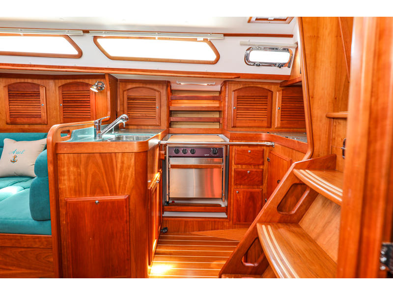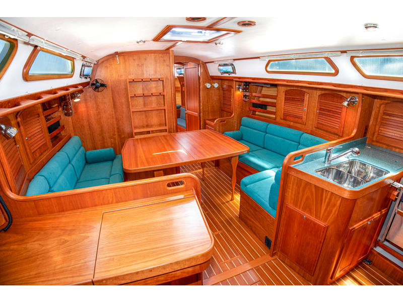 WHITE ROSE is a 2004 Deep Keel Sabre 426, known for its performance, comfort, and craftsmanship. Designed by Jim Taylor and built in Maine, she is the epitome of a performance oriented racer cruiser, ready and able to race to Hawaii or cruise to Tahiti. She has a new, robust, autopilot as well as Hydrovane wind vane steering equipment. Her rod rigging is was completely replaced in 2022. A lightweight carbon spinnaker pole supports wing on wind sailing downwind as well as a symmetrical spinnaker. A removable inner forestay supported by running backstays allows a balanced and fast sail plan in windy conditions. Sails are in good condition. She is supremely comfortable and easy to sail short handed even in strong winds and big seas.