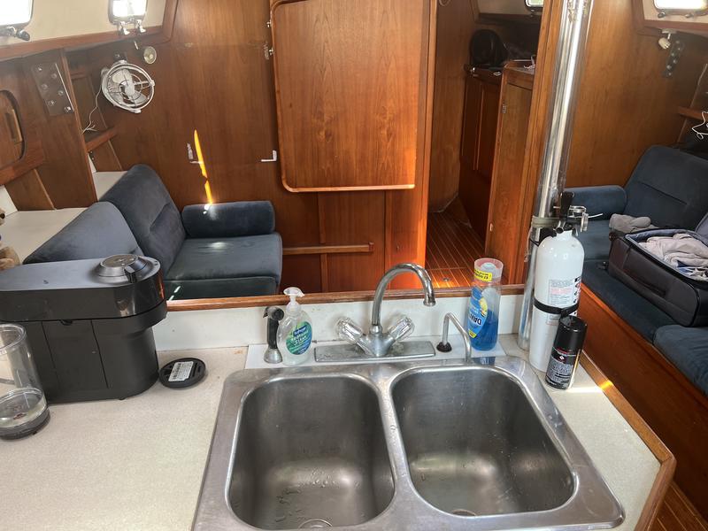 She has an extensive equipment list including a wind vane as well as a below deck auto pilot, spectra water maker, new Force 10 3 burner stove as well as a new 16k BTU air conditioner. The Yanmar diesel has 2900 hrs and runs perfectly. A brand new never used Genoa.and a full set of sails including a spinaker and a code 0 Drifter.She isnt a project boat yet will need some reconditioning. Needs new sail cover and lazy jack system.electronics etc. selling for much less than other Calibers on the market with less equipment. Slip paid through May 26 in Oxford Md