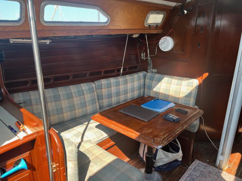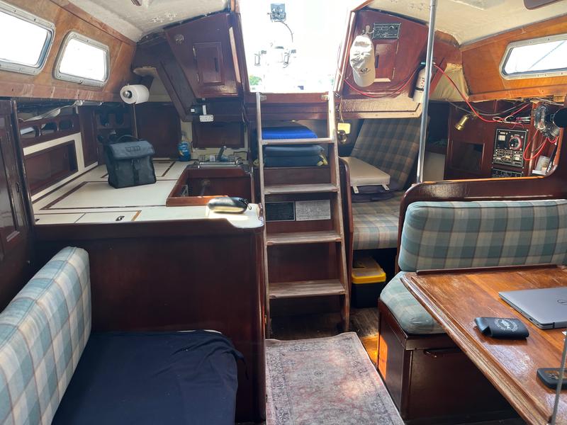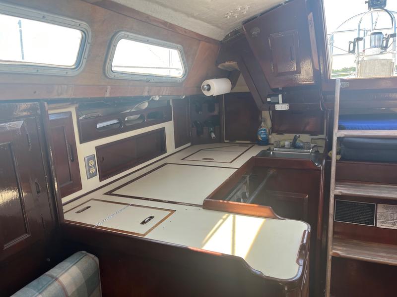 As a 40 year old boat, this Ericson 35 does need some TLC (hence the price), including cabin sole and interior woodwork cosmetics as desired, overhead vinyl removed and overhead painted (genoa tracks and chain plates have been rebedded), and a soft spot forward of the mast where this model typically has issues. It is a proven liveaboard.