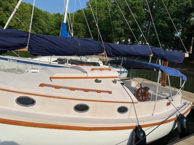 LOA : 22′ 6″ LWL : 21′ 4″ Beam : 10′ Draft 26″ Brd Up, 5′ 6″ Brd down Displacement 6,500 LBS, Yanmar 18 HP 2GM20 Diesel Engine. Fuel 12 gallons, Newer Sail Made By Quantam New Lazy Jacks Garmin GNX Wind Instrument, new Garmin GPS Striker Vivid 4/5, new AC Power 30 AMP Shore Power New Bimini, 2023 All Cleats and Window Frames are bronze Mast stripped & re-anodized Harken 20STA main sail winch, recent Strong track mainsail track, no mast hoops, MUCH SIMPLER !! All new running rigging New centerboard