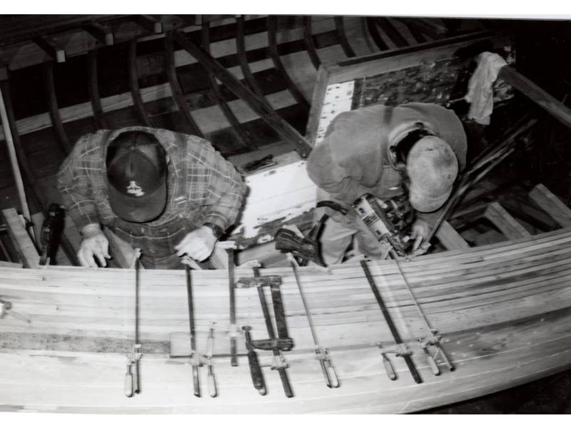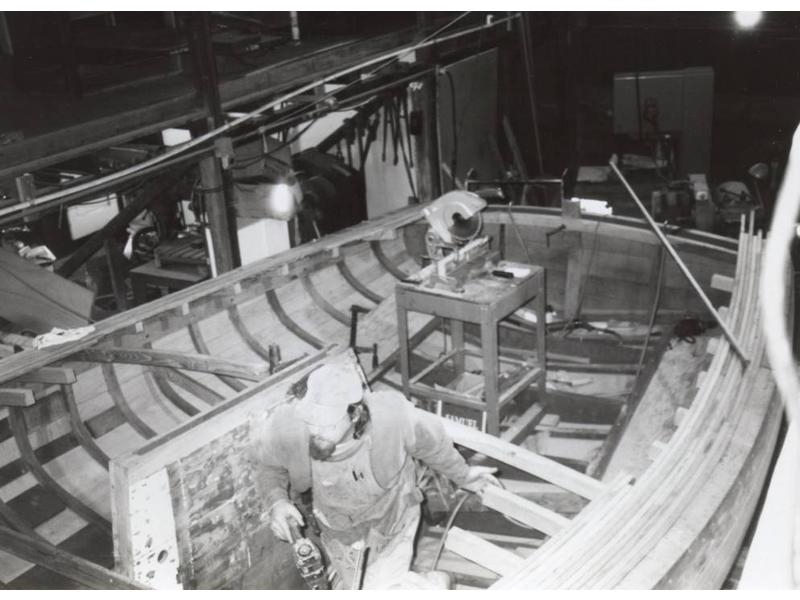 Rebuild begun in 1989, completed in 1999, about 15% of boat is original, including original wheel, other hardware, extremely wide planks in centerboard trunk and garboards.