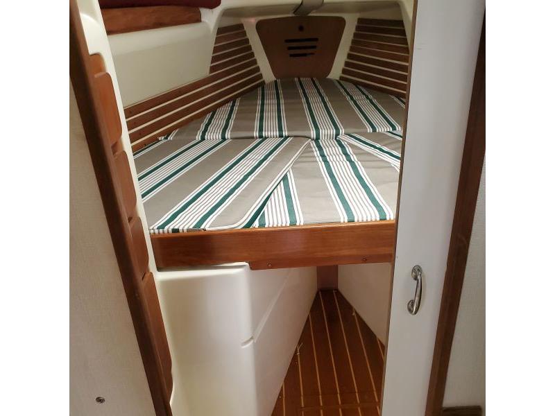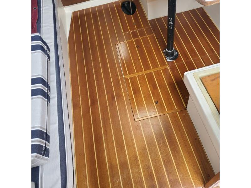 All interior teak restained, reglazed. 3 Dodger panels refurbished last year with top of the line Stratoglass Vinyl, all new stitching