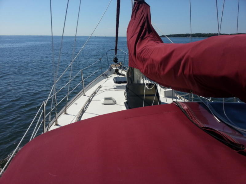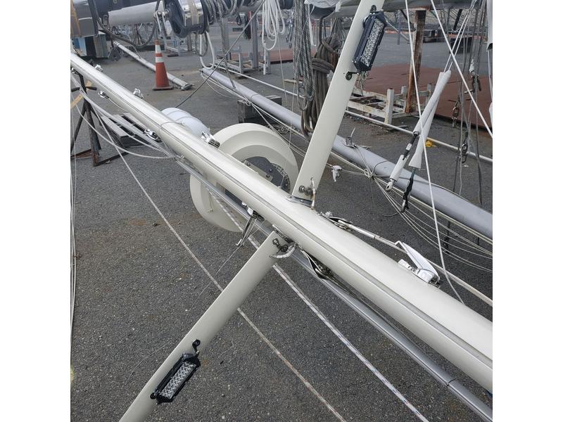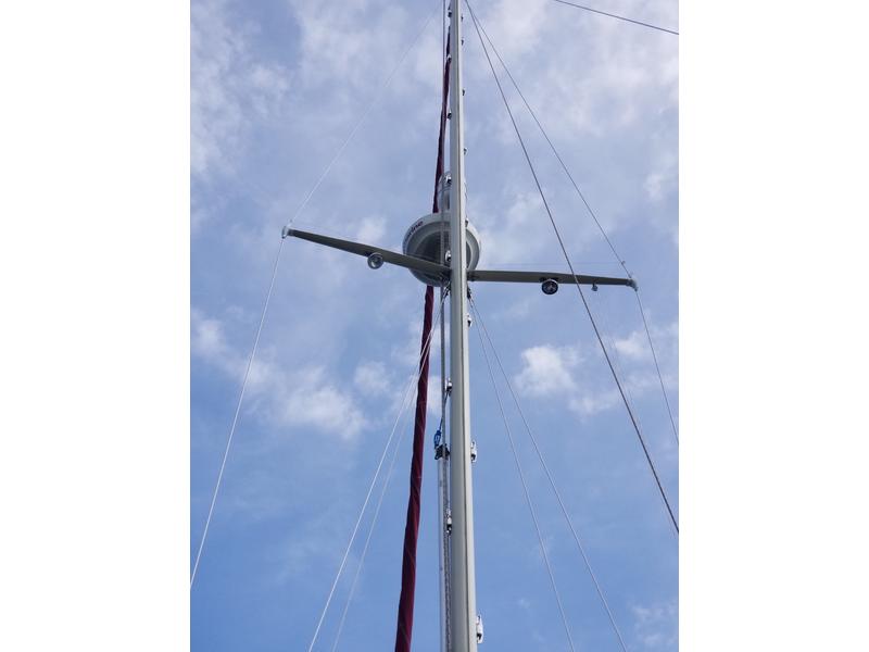 I also replaced the Mast, had to spice, too long, with all new shrouds and all wiring and mast hardware (some used from other mast) with 2 LED flood lights, all brand new Shrouds and turnbuckles, new antenna and all new mast lights. Also installed a "Mast Spinnaker Rail track", included is a 12' Pole and 21 s/s mast steps to the top. rewired completely. First class!