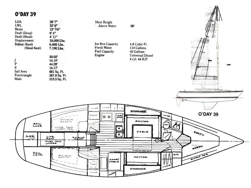 Dror is an 1984 O'Day 39, the same design as the Jeanneau Sun Fizz 40 by Phillipe Briand. She is a cruiser/racer, fast, maneuverable, comfortable for self sufficient liveaboard use and capable of world cruising. Draft 5.5 feet with bulb keel, suitable for ICW and Bahamas without compromising performance. 3 sleep cabins, one head with option for a second. A huge amount of accessible storage as well as under bunk storage.