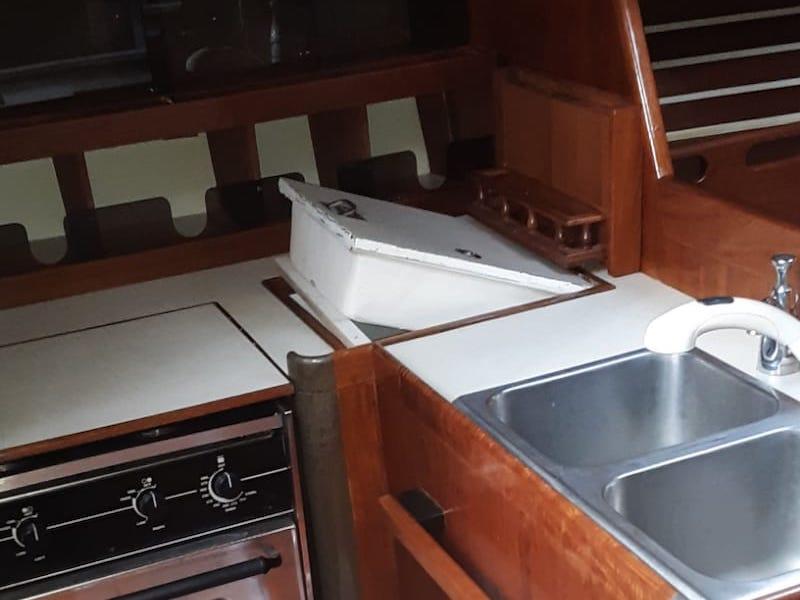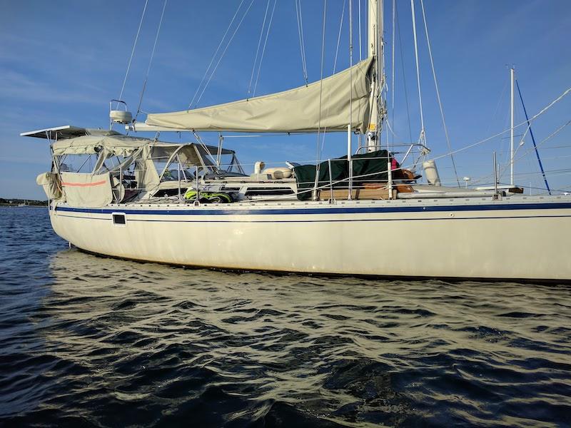 Engine: Universal Diesel 5444 44HP suitable for motoring continuously at hull speed. Heat Exchanger overhauled and sea water pump upgraded. Its Kubota block makes repairs affordable. Spare fresh water pump and starter. Exhaust elbow replaced 2020. All hoses were replaced. Cuttless bearing replaced in 2017.